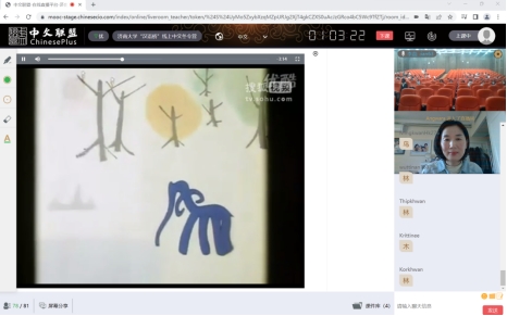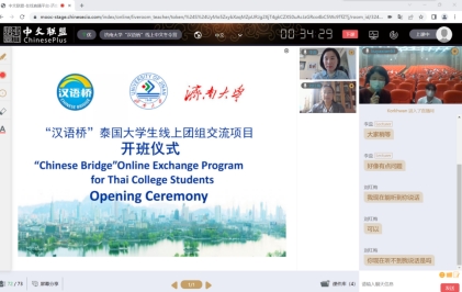 12月14日下午,由教育部中外语言合作交流中心主办、beat365承办的“汉语桥”线上中文冬令营(泰国班)举行了开营仪式。beat365经理孙岩梅、副经理刘红梅,泰国宋卡南方大学人文与社会学公司东方语言学系主任刘雅贤、该项目组教师,以及来自宋卡南方大学的87名员工相聚云端,在线上参加了开营仪式。