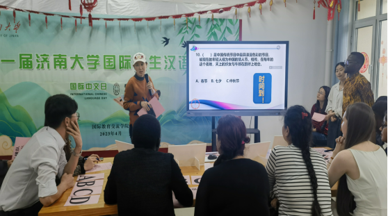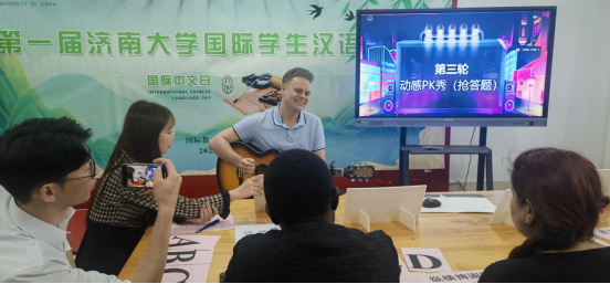 本次汉语大赛采取知识竞答赛的形式,以赛激趣,以赛促学。翰墨书香队、纵横捭阖队、九州乾坤队、俊采星驰队,四支参赛队伍各具特色,兼具实力。无论是团队作答还是个人答题,参赛选手们都展现了对中文极大的热爱,面对赛题从容应对,赢得观众们的阵阵掌声。竞答赛的题目内容涵盖汉字、诗词、成语、典故、节日等中国文化的相关知识,比赛期间也有中文老师现场为员工们答疑解惑,将趣味性与知识性完美融合。活动现场充满师生们的欢声笑语,每位员工都跃跃欲试。