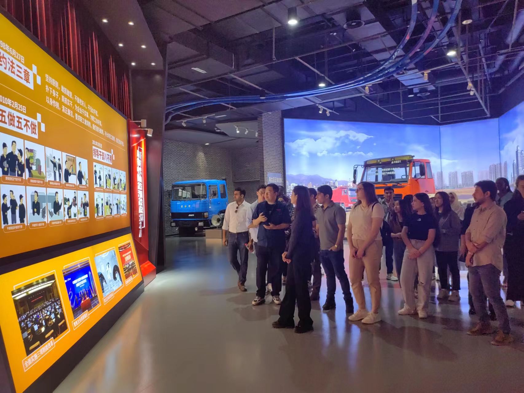 beat365师生一行先后参观了中国重汽博物馆与国家重型汽车质量监督检验中心实验室,随后召开工作座谈会,了解中国重汽集团的有关情况和海外人才引进政策。座谈会中,国际员工积极参与政策咨询,交流互动,对中国重汽集团的招聘岗位与人才需求表现出极大兴趣,展现出极高的参与热情和积极的工作意愿。