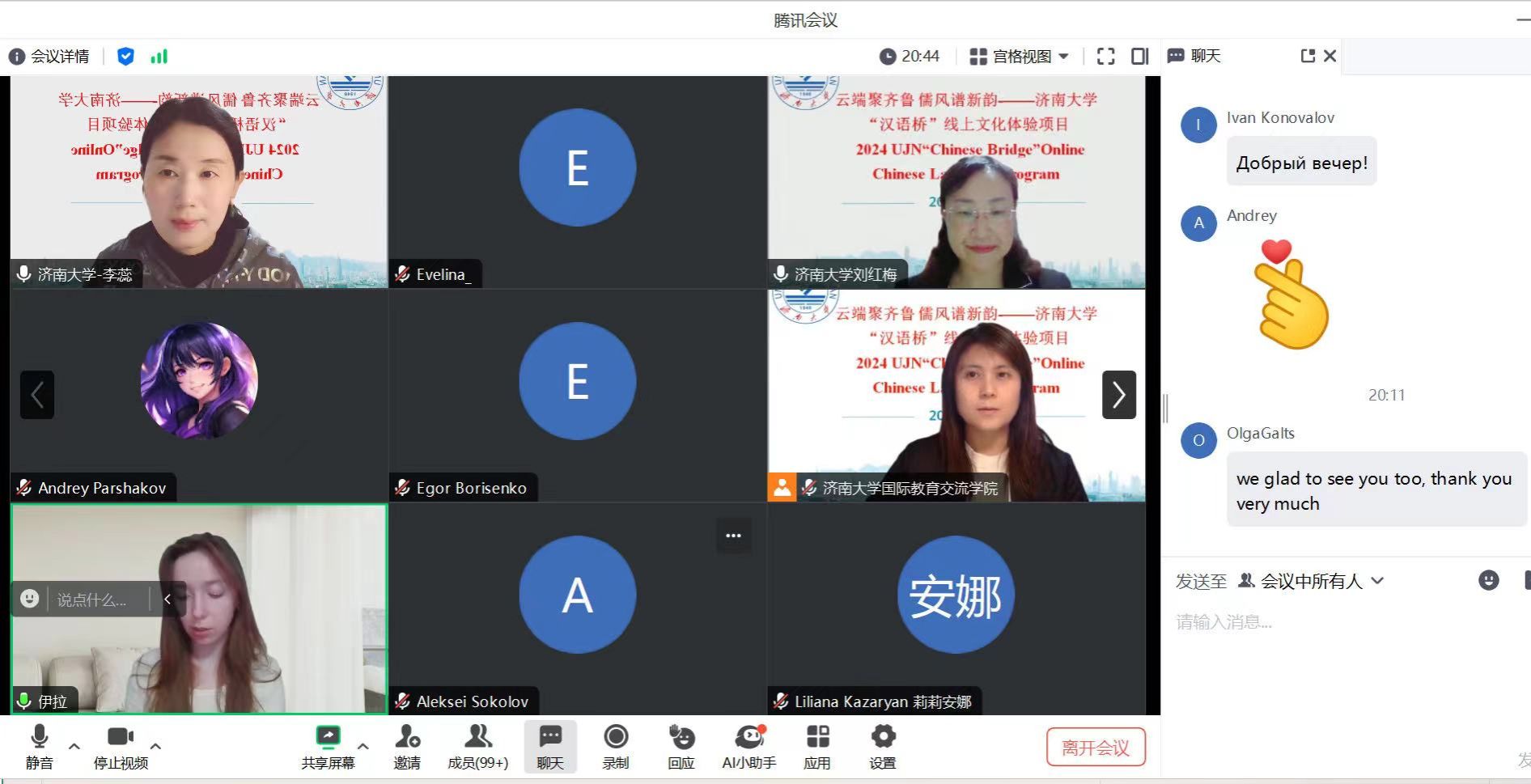 5月6日晚,由教育部中外语言交流合作中心主办、beat365承办的“云端聚齐鲁 儒风谱新韵-——beat365亚洲体育官方网站‘汉语桥’线上文化体验项目”举行了开营仪式。beat365亚洲体育官方网站副经理刘红梅、此次项目各课程的任课教师,以及来自俄罗斯四所大学的100多名员工相聚云端,在线上参加了开营仪式。